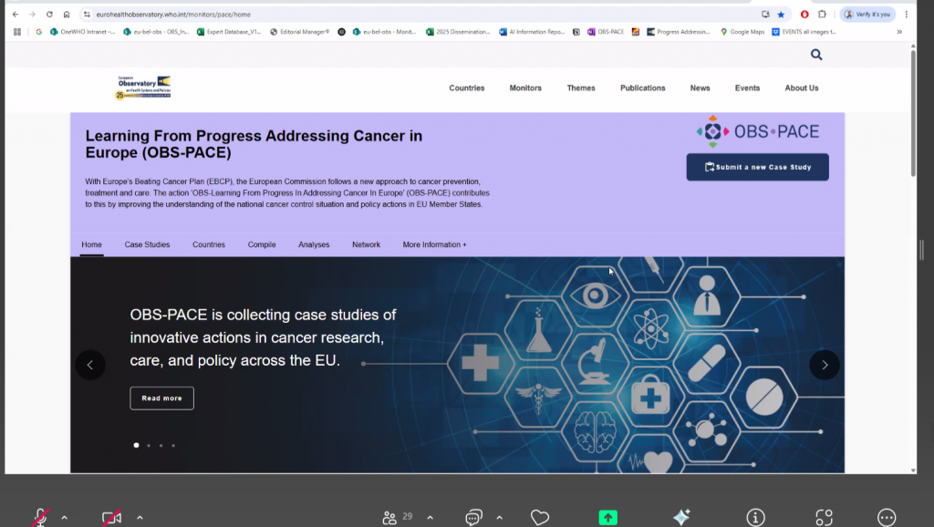 A key highlight of the meeting was the presentation of the newly launched website for the Observatory’s action “OBS–Learning From Progress In Addressing Cancer In Europe (OBS-PACE)”, now live and accessible at: